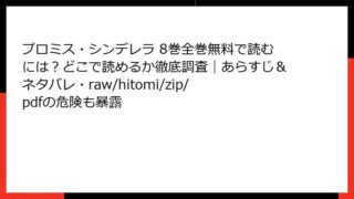 プロミス・シンデレラ プロミス・シンデレラ 8巻全巻無料で読むには?どこで読めるか徹底調査|あらすじ&ネタバレ・raw/hitomi/zip/pdfの危険も暴露 プロミス・シンデレラ 8巻 あらすじ詳細 『プロミス・シンデレラ』は、橘オレコによる人気の年の差ラブコメ漫画で、裏サンデーおよびマンガワンで連載され、2021年にはTBSでドラマ化もされた話題作です。8巻では、主人公・桂木早梅と片岡壱成... 2025.09.06 プロミス・シンデレラ少女マンガ