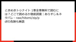 ときめきトゥナイト ときめきトゥナイト 1巻全巻無料で読むには?どこで読めるか徹底調査|あらすじ&ネタバレ・raw/hitomi/zip/pdfの危険も暴露 『ときめきトゥナイト』1巻のあらすじを徹底解説! 『ときめきトゥナイト』は、池野恋による日本の少女漫画で、1982年から1994年まで『りぼん』(集英社)で連載された名作ラブコメです。吸血鬼や狼女といったファンタジー要素と、ドキドキの恋... 2025.09.06 ときめきトゥナイト少女マンガ