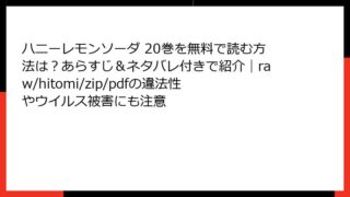 ハニーレモンソーダ ハニーレモンソーダ 20巻を無料で読む方法は?あらすじ&ネタバレ付きで紹介|raw/hitomi/zip/pdfの違法性やウイルス被害にも注意 ハニーレモンソーダ 20巻 あらすじ詳細 村田真優による『ハニーレモンソーダ』は、集英社の「りぼん」で連載中の人気少女漫画で、青春と恋愛をテーマにした爽やかなストーリーが多くの読者を魅了しています。20巻では、石森羽花と三浦界の関係がさ... 2025.09.06 ハニーレモンソーダ少女マンガ