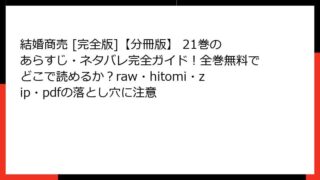 女性マンガ 結婚商売 [完全版]【分冊版】 21巻のあらすじ・ネタバレ完全ガイド!全巻無料でどこで読めるか?raw・hitomi・zip・pdfの落とし穴に注意 結婚商売 【分冊版】 21巻 あらすじ詳細 『結婚商売 【分冊版】』21巻は、韓国発の人気ウェブトゥーン『結婚商売』の物語がさらに深みを増すエピソードです。贅沢で「悪妻」と呼ばれたビアンカ・ド・アルノーが、18歳の自分に回帰し、二度目の... 2025.09.09 女性マンガ結婚商売 [完全版]【分冊版】