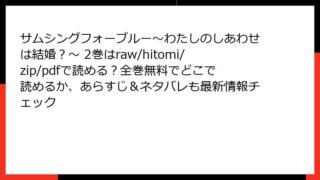 サムシングフォーブルー~わたしのしあわせは結婚?~ サムシングフォーブルー~わたしのしあわせは結婚?~ 2巻はraw/hitomi/zip/pdfで読める?全巻無料でどこで読めるか、あらすじ&ネタバレも最新情報チェック 『サムシングフォーブルー~わたしのしあわせは結婚?~』2巻のあらすじを詳しく解説 花糸による女性向け漫画『サムシングフォーブルー~わたしのしあわせは結婚?~』は、結婚を夢見るアラサー女性・小羽の恋愛と自己成長を描いた心揺さぶる物語です。... 2025.09.09 サムシングフォーブルー~わたしのしあわせは結婚?~女性マンガ