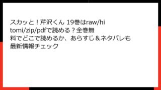 スカッと!芹沢くん スカッと!芹沢くん 19巻はraw/hitomi/zip/pdfで読める?全巻無料でどこで読めるか、あらすじ&ネタバレも最新情報チェック スカッと!芹沢くん 19巻 あらすじ詳細 『スカッと!芹沢くん』は、文京子による人気の女性向け漫画で、主人公・桜井彩(さくらいあや)と毒舌で正義感溢れる後輩・芹沢旬(せりざわしゅん)が織りなすオフィスストーリーが魅力です。理不尽な人間関... 2025.09.09 スカッと!芹沢くん女性マンガ