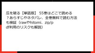 女性マンガ 瓜を破る【単話版】 55巻はどこで読める?あらすじやネタバレ、全巻無料で読む方法も検証(rawやhitomi、zip/pdf利用のリスクも解説) 瓜を破る【単話版】 55巻 あらすじ詳細 板倉梓による人気漫画「瓜を破る」の単話版55巻は、主人公・香坂まい子と鍵谷千里の不器用ながらも心温まる恋愛模様を丁寧に描いた一編です。この巻では、交際を始めたばかりの二人が新たな関係性を築こうと... 2025.09.09 女性マンガ瓜を破る【単話版】