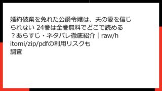 女性マンガ 婚約破棄を免れた公爵令嬢は、夫の愛を信じられない 24巻は全巻無料でどこで読める?あらすじ・ネタバレ徹底紹介|raw/hitomi/zip/pdfの利用リスクも調査 「婚約破棄を免れた公爵令嬢は、夫の愛を信じられない」24巻のあらすじ 漫画「婚約破棄を免れた公爵令嬢は、夫の愛を信じられない」24巻は、霰屋こん(原作)と、しきくれる(作画)による人気の女性向けロマンスファンタジー作品です。スフォルツィ... 2025.09.07 女性マンガ婚約破棄を免れた公爵令嬢は、夫の愛を信じられない