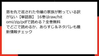 女性マンガ 恩を仇で返された令嬢の家族が黙っている訳がない【単話版】 16巻はraw/hitomi/zip/pdfで読める?全巻無料でどこで読めるか、あらすじ&ネタバレも最新情報チェック 恩を仇で返された令嬢の家族が黙っている訳がない【単話版】 16巻 あらすじ 「恩を仇で返された令嬢の家族が黙っている訳がない【単話版】 16巻」は、七ツ河ほづみによる人気の女性向けファンタジー漫画で、COMIC ROOMにて連載中の作品... 2025.09.08 女性マンガ恩を仇で返された令嬢の家族が黙っている訳がない【単話版】