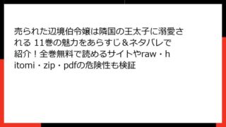 売られた辺境伯令嬢は隣国の王太子に溺愛される 売られた辺境伯令嬢は隣国の王太子に溺愛される 11巻の魅力をあらすじ&ネタバレで紹介!全巻無料で読めるサイトやraw・hitomi・zip・pdfの危険性も検証 『売られた辺境伯令嬢は隣国の王太子に溺愛される』11巻 あらすじ 『売られた辺境伯令嬢は隣国の王太子に溺愛される』は、小椋あんによる人気の女性向けファンタジー漫画で、壮大なストーリーと魅力的なキャラクターが織りなす物語が多くの読者を惹き... 2025.09.08 売られた辺境伯令嬢は隣国の王太子に溺愛される女性マンガ