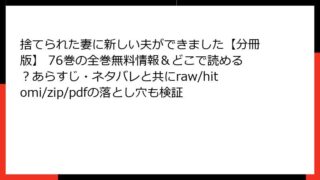 女性マンガ 捨てられた妻に新しい夫ができました【分冊版】 76巻の全巻無料情報&どこで読める?あらすじ・ネタバレと共にraw/hitomi/zip/pdfの落とし穴も検証 「捨てられた妻に新しい夫ができました【分冊版】 76巻」あらすじ詳細 「捨てられた妻に新しい夫ができました」は、過酷な境遇から這い上がるヒロイン・クロエと、彼女を救う侯爵アッシュ・ブリニクルとの感動的な物語です。76巻はシリーズの最終話... 2025.09.08 女性マンガ捨てられた妻に新しい夫ができました【分冊版】