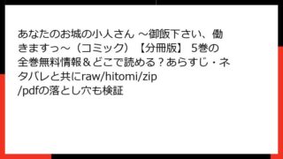 あなたのお城の小人さん ~御飯下さい、働きますっ~(コミック)【分冊版】 あなたのお城の小人さん ~御飯下さい、働きますっ~(コミック)【分冊版】 5巻の全巻無料情報&どこで読める?あらすじ・ネタバレと共にraw/hitomi/zip/pdfの落とし穴も検証 あなたのお城の小人さん ~御飯下さい、働きますっ~(コミック)【分冊版】 5巻 あらすじ 『あなたのお城の小人さん ~御飯下さい、働きますっ~』は、美袋和仁とп猫Rによる原作を基に、栗原一実が漫画化した心温まる異世界ファンタジー作品です... 2025.09.08 あなたのお城の小人さん ~御飯下さい、働きますっ~(コミック)【分冊版】女性マンガ