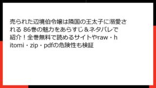 売られた辺境伯令嬢は隣国の王太子に溺愛される 売られた辺境伯令嬢は隣国の王太子に溺愛される 86巻の魅力をあらすじ&ネタバレで紹介!全巻無料で読めるサイトやraw・hitomi・zip・pdfの危険性も検証 『売られた辺境伯令嬢は隣国の王太子に溺愛される』第86巻 あらすじ 小椋あん先生による人気女性向けファンタジーマンガ『売られた辺境伯令嬢は隣国の王太子に溺愛される』は、貴族社会のしがらみに抗いながらも愛と復讐の間で葛藤するヒロイン、アン... 2025.09.05 売られた辺境伯令嬢は隣国の王太子に溺愛される女性マンガ