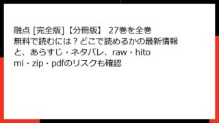 女性マンガ 融点 [完全版]【分冊版】 27巻を全巻無料で読むには?どこで読めるかの最新情報と、あらすじ・ネタバレ、raw・hitomi・zip・pdfのリスクも確認 『融点 【分冊版】』27巻のあらすじを徹底解説! 『融点 【分冊版】』は、Bulgamaによる作画、Gyougyul原作の人気女性マンガで、恋愛とヤクザの世界が交錯するドラマチックなストーリーが魅力です。27巻では、高島美緒と斎藤亜利眞... 2025.09.06 女性マンガ融点 [完全版]【分冊版】