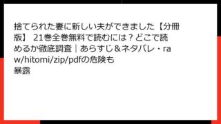 女性マンガ 捨てられた妻に新しい夫ができました【分冊版】 21巻全巻無料で読むには?どこで読めるか徹底調査|あらすじ&ネタバレ・raw/hitomi/zip/pdfの危険も暴露 「捨てられた妻に新しい夫ができました【分冊版】 21巻」あらすじ詳解 「捨てられた妻に新しい夫ができました」は、過酷な過去を背負った少女クロエが新たな人生を歩み始める感動的なラブストーリーです。分冊版の21巻では、クロエとアッシュの物語... 2025.09.06 女性マンガ捨てられた妻に新しい夫ができました【分冊版】