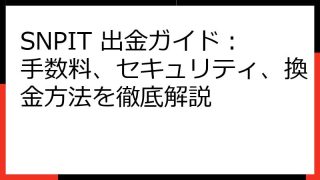 SNPIT SNPIT 出金ガイド:手数料、セキュリティ、換金方法を徹底解説