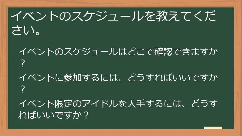 イベント情報を見逃すと、イベント限定アイドルを入手するチャンスを逃してしまう可能性があります。