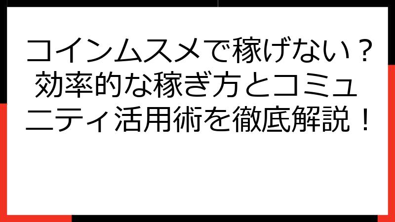 この記事を読めば、コインムスメで稼ぐことについて、より深く理解できるはずです。
