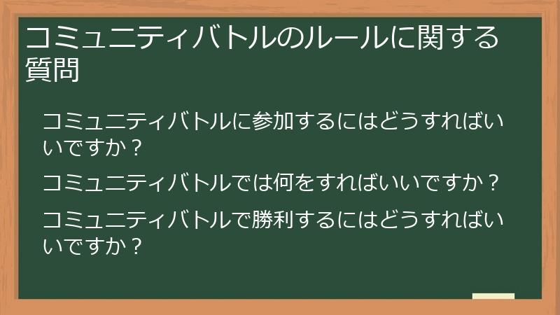 - コミュニティバトルでは、仲間とのコミュニケーションが勝利に繋がる重要な要素となります。