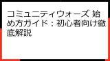 ゲームの目的やルール、基本的な操作方法など、コミュニティウォーズを始めるために必要な情報をわかりやすく解説します。