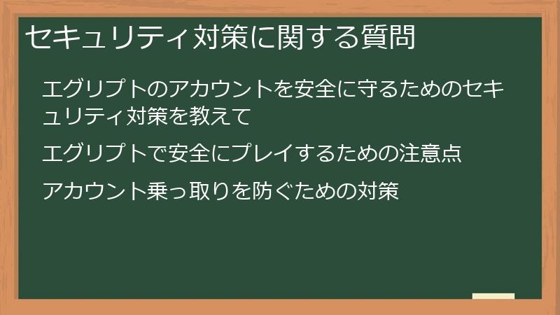 エグリプトでアカウントのセキュリティ対策を強化する方法、そして安全にプレイするための注意点について、よくある質問とその回答をまとめました。