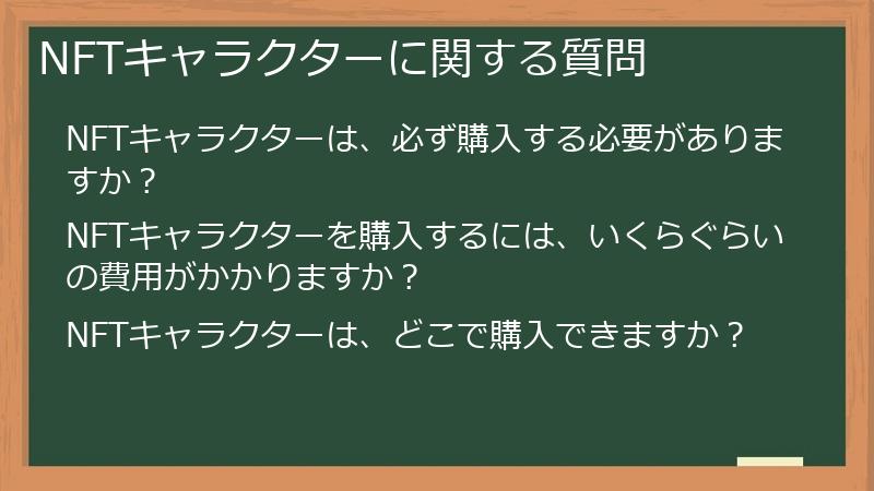 ここでは、NFTキャラクターの入手方法に関するよくある質問をまとめました。