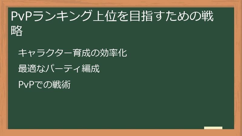 3. PvPランキングで上位を目指すには、どうすればいいですか?