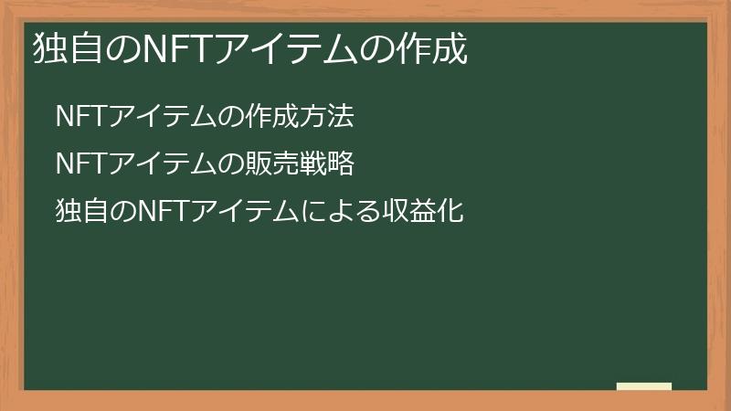 NFTアイテムの価値や取引方法、独自のNFTアイテムの作成について解説しています。