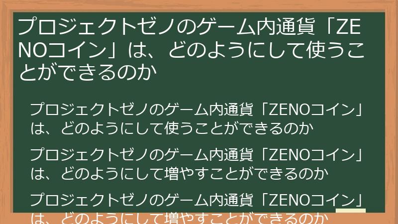 プロジェクトゼノのゲーム内通貨「ZENOコイン」は、どのようにして使うことができるのか