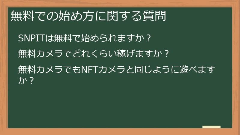 このセクションでは、SNPITのNFTカメラの購入を検討している方に向けて、よくある質問とその回答をまとめました。