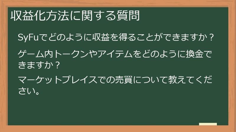 本セクションでは、SyFuでどのように収益を得ることができるのか、具体的な方法について、よくある質問とその回答をまとめました。