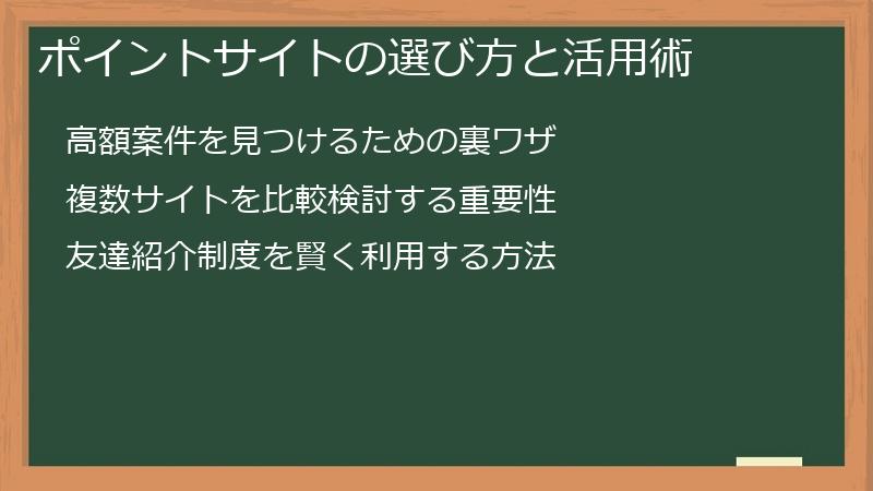 また、ポイントサイト選びは慎重に行い、安全なサイトを選びましょう。