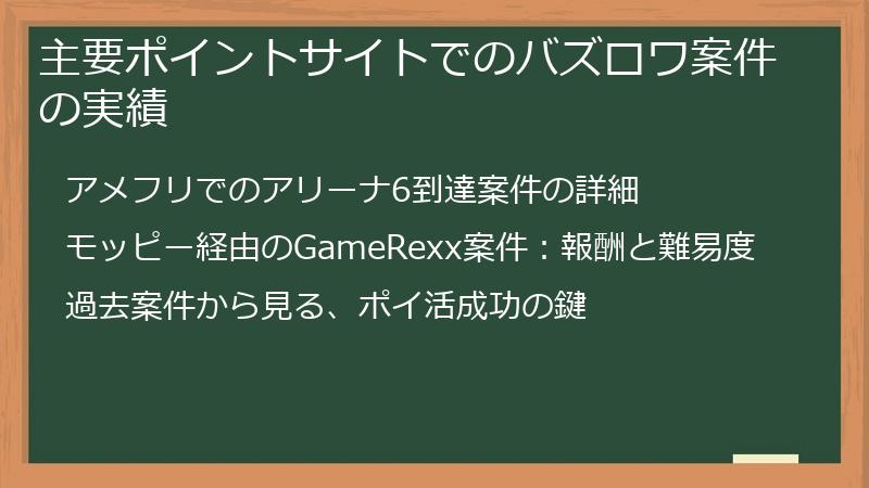 主要ポイントサイトでのバズロワ案件の実績