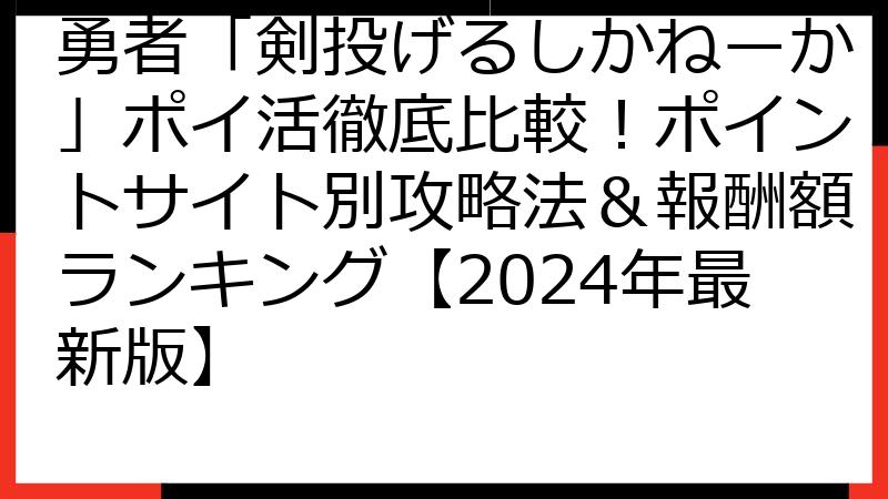 - 【2024年最新】「勇者『剣投げるしかねーか』」ポイ活徹底比較!おすすめポイントサイトはどこ?