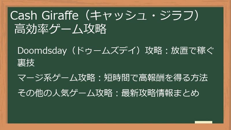 - Cash Giraffe(キャッシュ・ジラフ)攻略法:効率的な稼ぎ方