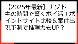 【2025年最新】「ナゾトキの時間」ポイ活案件は本当にある?ポイントサイト徹底比較&将来予測 「ナゾトキの時間」は、謎解き好きなら誰もが知っている人気のゲームアプリですよね。 でも、お得にポイ活できる案件は、本当にあるのでしょうか? この記...
