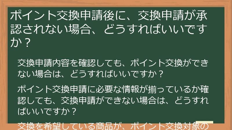 ポイント交換申請が承認されない場合、原因としては、以下の可能性が考えられます。