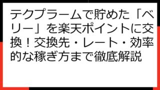 テクプラーム テクプラームで貯めた「ベリー」を楽天ポイントに交換!交換先・レート・効率的な稼ぎ方まで徹底解説 テクプラームで貯めた「ベリー」、楽天ポイントに賢く交換!交換先から効率的な稼ぎ方まで徹底解説 この記事では、歩くだけで楽天ポイントが貯まる人気のポイ活アプリ「テクプラーム」について、その交換先を中心に、効率的な稼ぎ方までを徹底的に解説します... 2025.08.20 テクプラーム