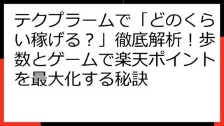 テクプラーム テクプラームで「どのくらい稼げる?」徹底解析!歩数とゲームで楽天ポイントを最大化する秘訣 テクプラームで「どのくらい稼げる?」徹底解析!歩くだけじゃない、楽天ポイントを最大化する秘密 「テクプラーム」というポイ活アプリ、気になっていますよね。 「歩くだけで楽天ポイントが貯まる」と聞くと、一体どのくらい稼げるのか、現実的な金額はい... 2025.08.20 テクプラーム