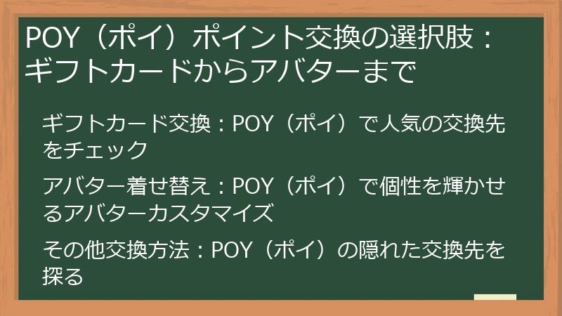 このセクションを読むことで、POY(ポイ)ポイント交換に関する理解が深まり、安心してPOY(ポイ)でのポイ活を楽しむことができるようになります。