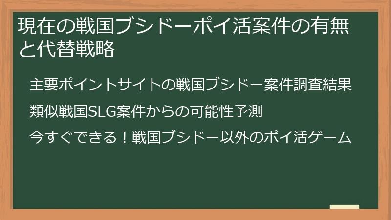 現在の戦国ブシドーポイ活案件の有無と代替戦略