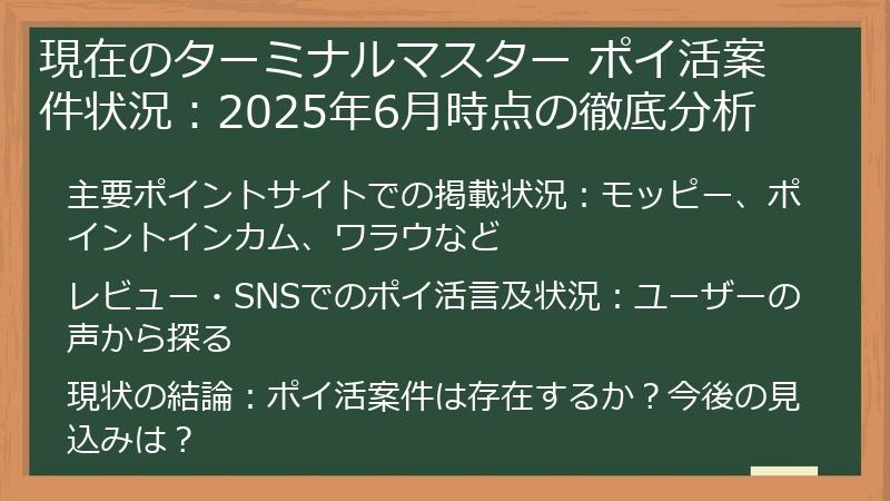 2025年6月現在のターミナルマスターのポイ活案件の状況を徹底的に分析します。