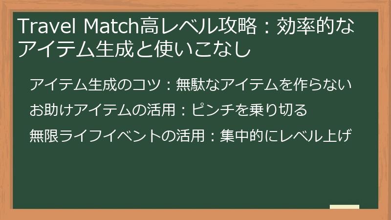 これらのFAQを読めば、Travel Matchのゲームシステムを理解し、より戦略的にゲームを進めることができるでしょう。