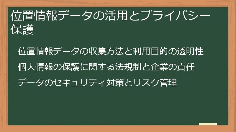 - 位置情報データの不正取得により、利用者の行動パターンが把握され、プライバシーが侵害される可能性があります。これは、ストーカー行為や嫌がらせといった犯罪に繋がる可能性も秘めています。