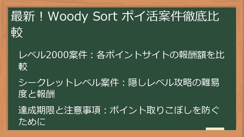 この記事では、「Woody Sort: Ball Sort Puzzle(ウッディソート:カラーボールを並べ替える) ポイントサイト 比較」というキーワードで検索しているあなたに向けて、最新のポイ活案件情報から攻略のコツ、ユーザーの口コミまで、徹底的に解説します。