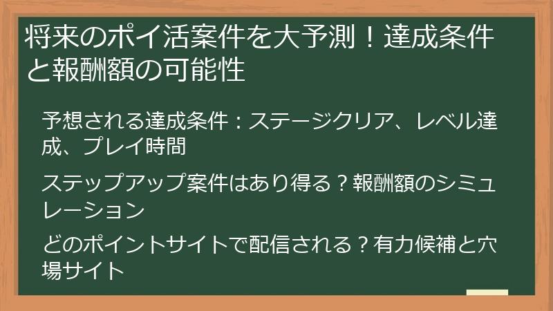 そこで本記事では、最新のポイ活案件情報はもちろん、過去の案件から学ぶ攻略法、そして将来の可能性まで、網羅的にご紹介。