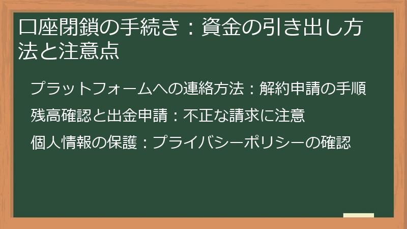 そのため、口座閉鎖手続き後も、個人情報の取り扱いに関して注意が必要です。