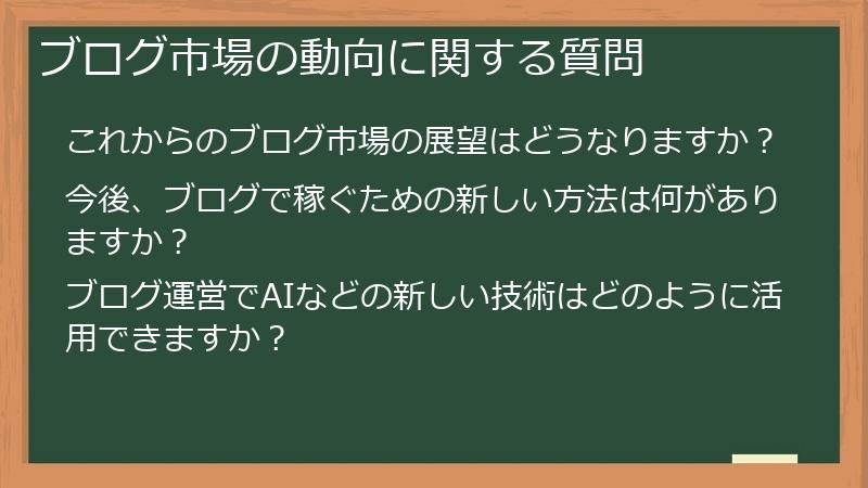 このセクションでは、ブログ市場の動向に関するよくある質問とその回答をまとめました。