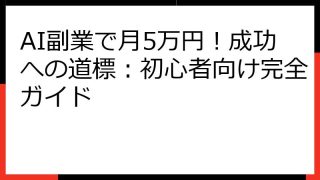 ```html AI副業診断:あなたのスキルと市場ニーズに最適な副業を見つけ出す完全ガイド ``` AI副業に興味がありますか?。 でも、自分に合った仕事が分からず、悩んでいませんか?。 数多くのAI関連の副業が存在する中で、最適なものを選...