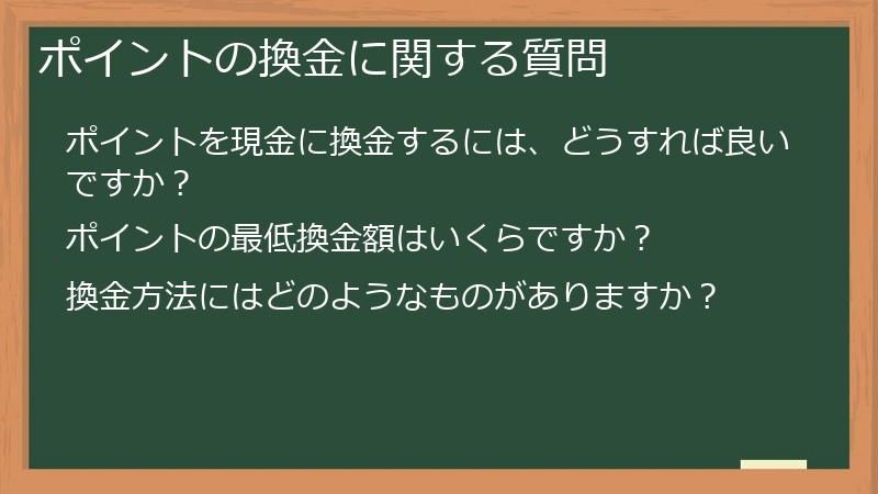 - 獲得したポイントは、定期的に換金することで、サービス停止リスクを軽減することができます。 目標金額を設定し、計画的にポイントを換金しましょう。