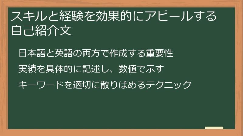 自己紹介文では、あなたのスキルや経験を具体的に記述することが重要です。