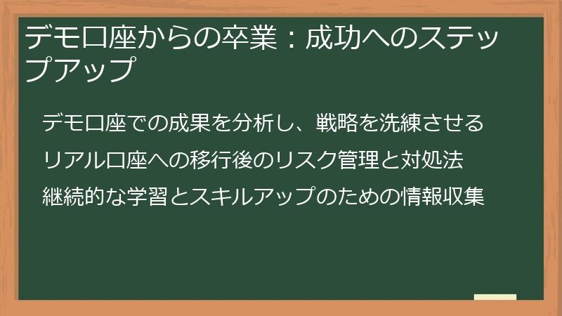 デモ口座を最大限に活用することで、本番取引での成功確率を高めるための戦略や、リスク管理の重要性についても触れていきます。