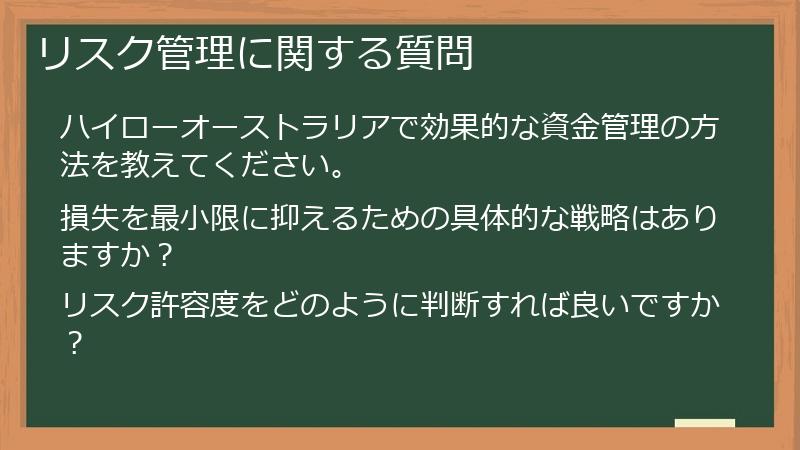 - ハイローオーストラリアに関するよくある質問と詳細解説