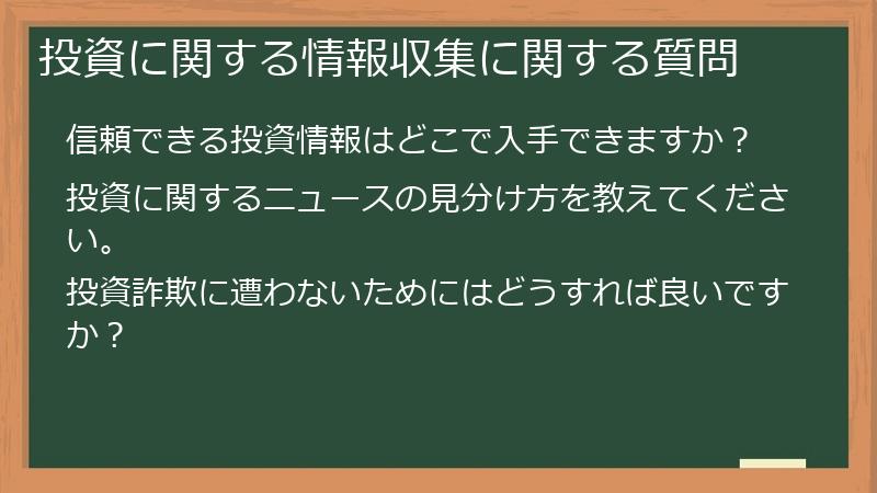このセクションでは、投資に関する情報収集方法、信頼できる情報源の見分け方、そして投資詐欺に遭わないための対策について解説します。